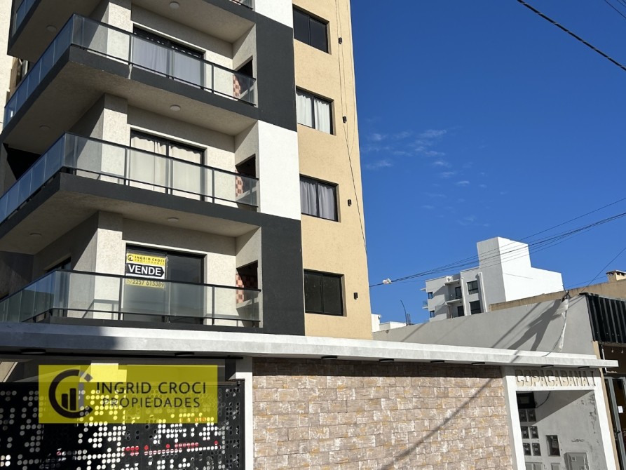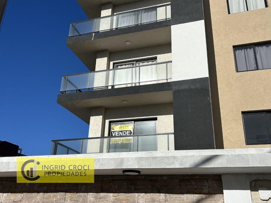 Departamento a estrenar en 1er piso al frente, dos ambientes con cochera, balcón con parrilla a metros del mar.